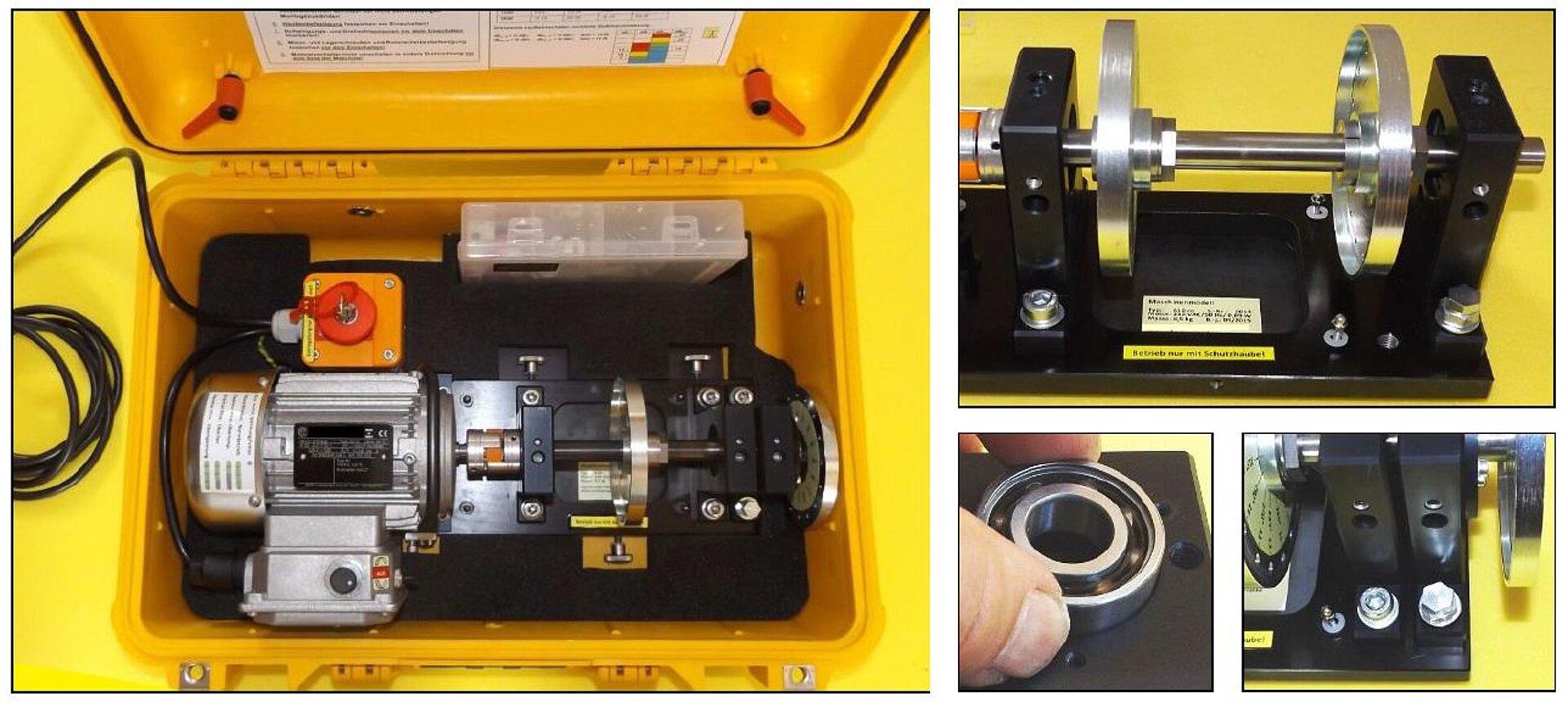 Dem Demokoffer liegen unterschiedlich geschädigte Lager bei. Die rotierenden Bauteile sind über ein