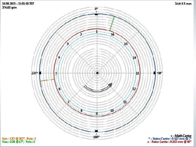 Überwachung des minimalen Luftspalts zwischen Rotor und Stator und Analyse des Polprofils.