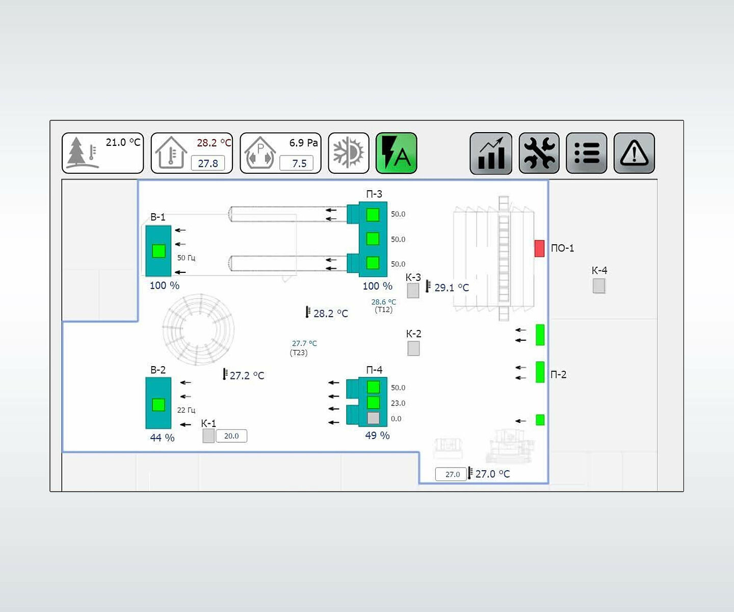 Integrierter Interface-Editor: Integrierter Editor, der in einem Standard Webbrowser läuft ermöglicht es, individuelle Visualisierungsschaubilder wie in einem HMI zu erstellen. Funktionen wie im SCADA System: Textelemente, Vektorgrafiken, Animationen, Trends, historische Grafiken, Nachrichten, Texteingabefelder und Elemente der Rezeptursteuerung.